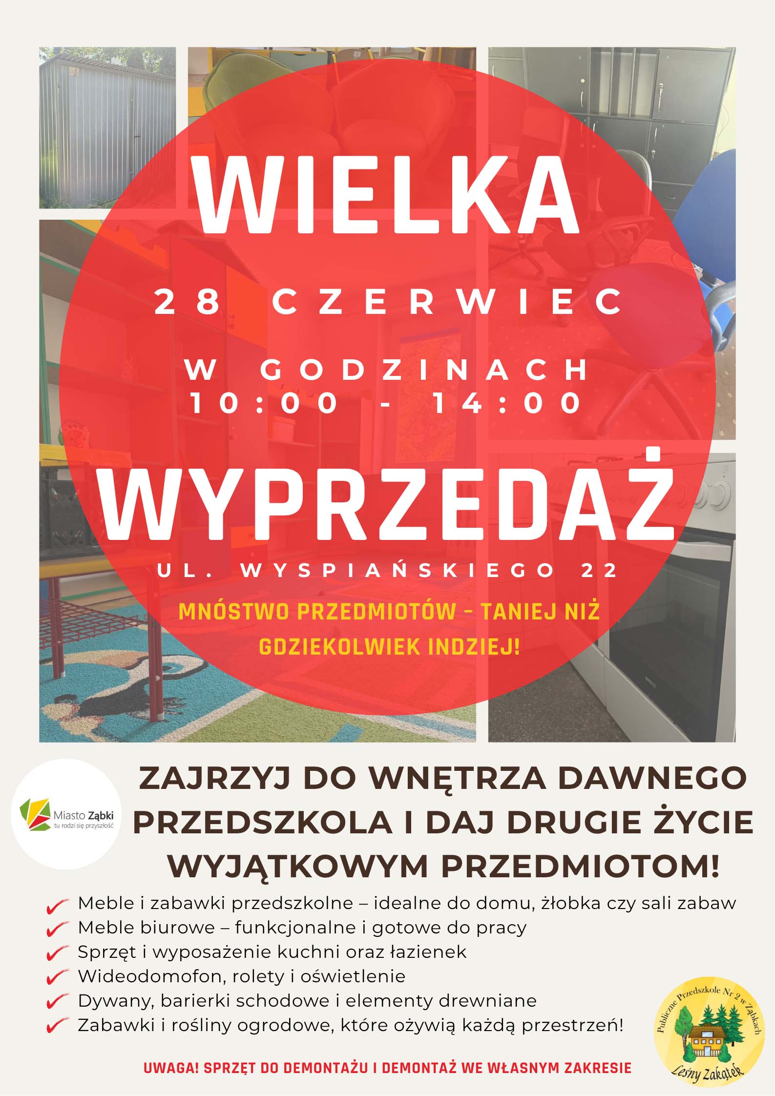 UM w Ząbkach zaprasza na Wielką Wyprzedaż, która odbędzie się już 28 czerwca br., w godzinach 10:00-14:00 w budynku dawnego przedszkola przy ul. Wyspiańskiego 22!