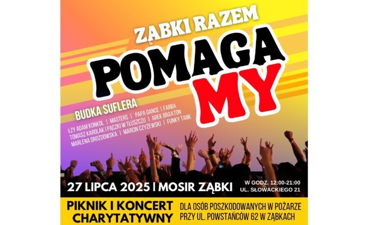 27 lipca (niedziela) przy Miejskim Ośrodku Sportu i Rekreacji (Juliusza Słowackiego 21) odbędzie się piknik i koncert charytatywny. Dzięki wsparciu samorządu wojewodztwa mazowieckiego w Ząbkach zabrzmi muzyka, która niesie pomoc!