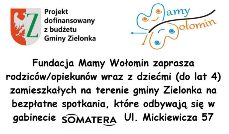 Spotkania będą odbywać się w gabinecie SOMATERIA, zlokalizowanym w Zielonce, przy ul. Mickiewicza 57. Obowiązują zapisy pod numerem telefonu 668-106-583 lub mailowo na adres: mamy.wolomin@gmail.com.