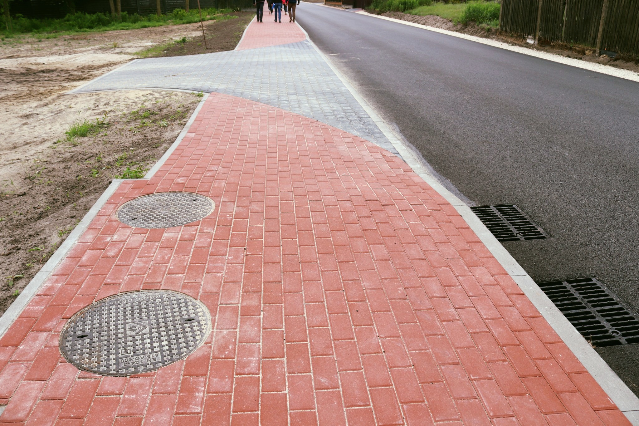• wykonanie chodnika z kostki betonowej o zmiennej szerokości od 1,8 m do 2,38 m