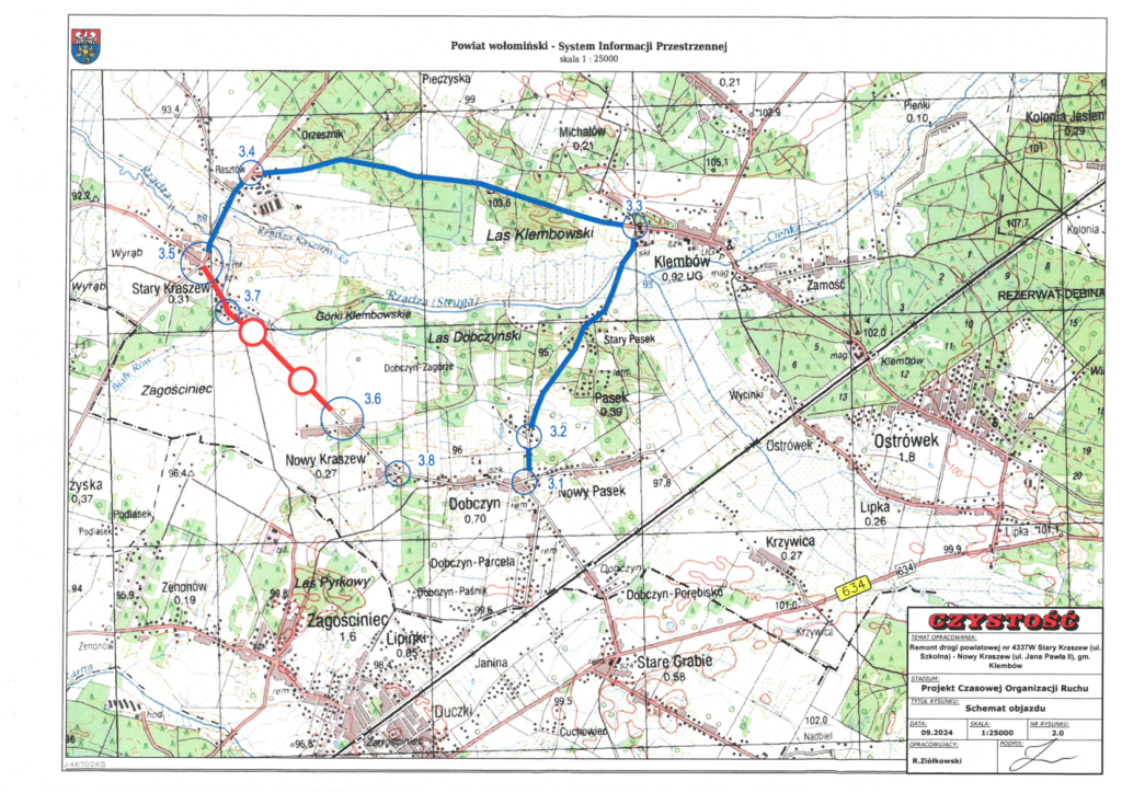 Starostwo Powiatowe w Wołominie informuje, że z dniem 27 stycznia została zamknięta w całości dla ruchu drogowego DP 4337W Stary Kraszew – Nowy Kraszew. Wykonawca rozpoczyna roboty związane z rozbiórką nawierzchni.