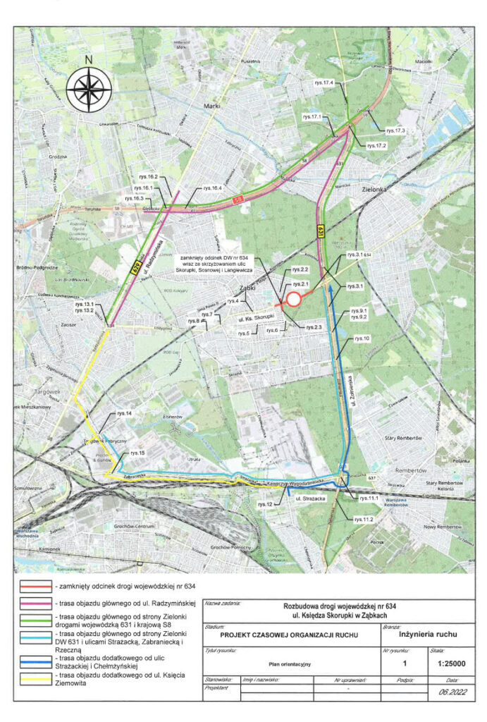 Wykonawca rozbudowy drogi wojewódzkiej nr 634 (ul. ks. Skorupki w Ząbkach) informuje, że w połowie września 2022 r. planowane jest zamknięcie ww. drogi na odcinku od ronda DW634/DW631 do ul. Gdyńskiej w Ząbkach.