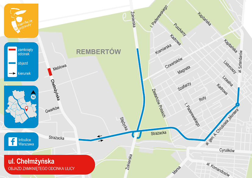 W weekend wykonawcy kanalizacji na ulicach Chełmżyńskiej będzie odtwarzać nawierzchnię jezdni. Od piątku, 5 kwietnia, od godz. 22.00 do poniedziałku, 8 kwietnia, do godz. 5.00 zamknięta będzie jezdnia ul. Chełmżyńskiej w rejonie ul. Meblowej. Objazd będzie prowadził ul. Strażacką do ul. Żołnierskiej. Swoje trasy zmienią autobusy linii 145, które pojadą objazdem przez ul. Powstańców, al. J. Piłsudskiego, Żołnierską i Strażacką.