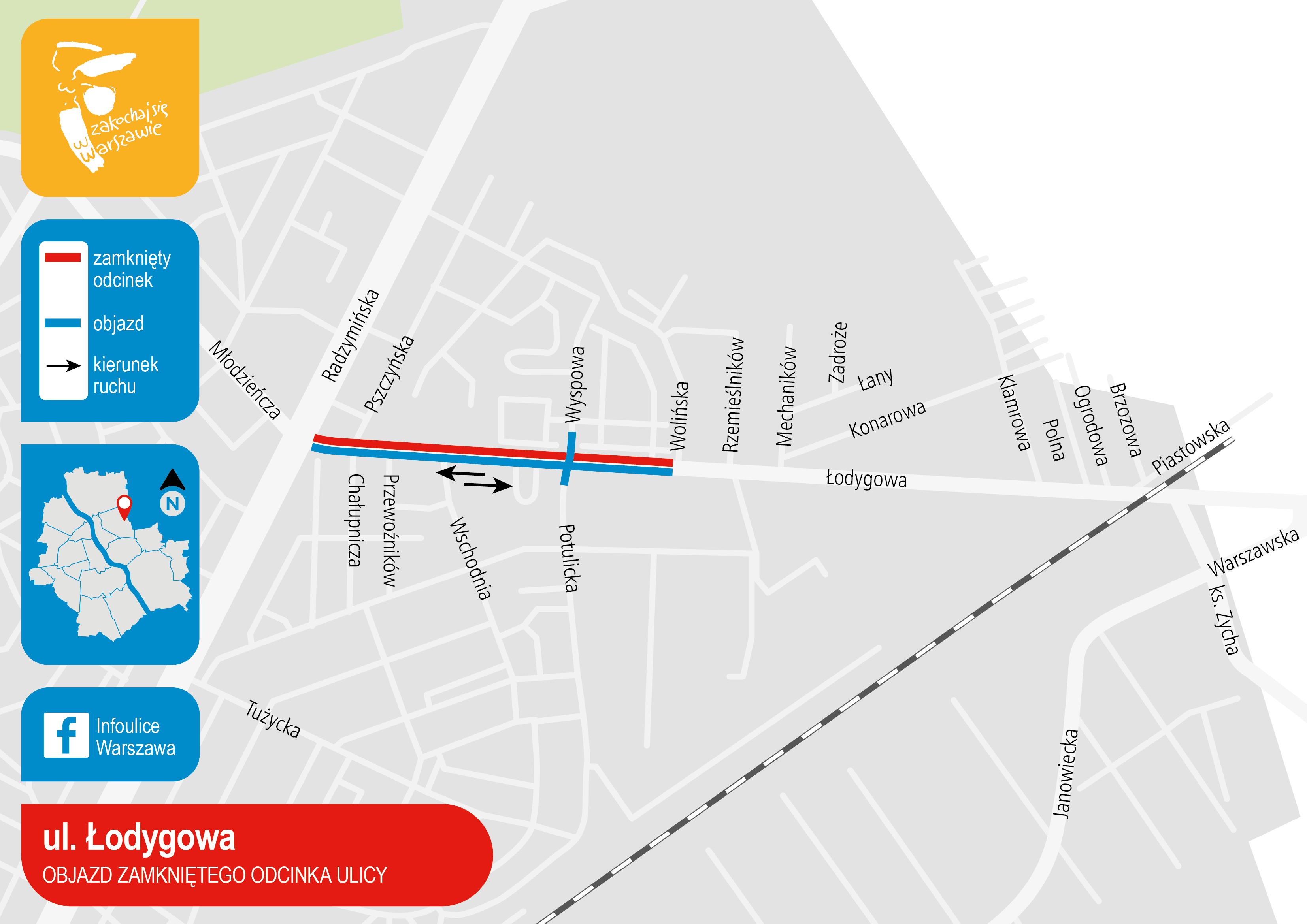 W sobotę, 6 kwietna, o godz. 21.00 zmieni się organizacja ruchu na ul. Łodygowej. Wykonawca przebudowy rozpocznie układanie ostatniej warstwy nawierzchni na północnej jezdni. Ruch w obydwu kierunkach na odcinku od ul. Radzymińskiej do Wolińskiej zostanie skierowany na jezdnię południową. Zostanie tam wytyczone po jednym pasie w każdą stronę. Na wysokości skrzyżowania z ul. Wolińską kierowcy przejadą na jezdnię północną, którą ruch odbywa się do ul. Klamrowej, dalej pojazdy omijają plac budowy, jadąc nowo wybudowanymi jezdniami serwisowymi. Połączenie z ul. Łodygową odzyskają ulice Przewoźników i Wschodnia. Czynne będzie także skrzyżowanie z ulicami Wyspową i Potulicką. W połowie kwietnia wykonawca robót planuje udostępnić kierowcom obydwie jezdnie na odcinku od ul. Radzymińskiej do Wolińskiej.