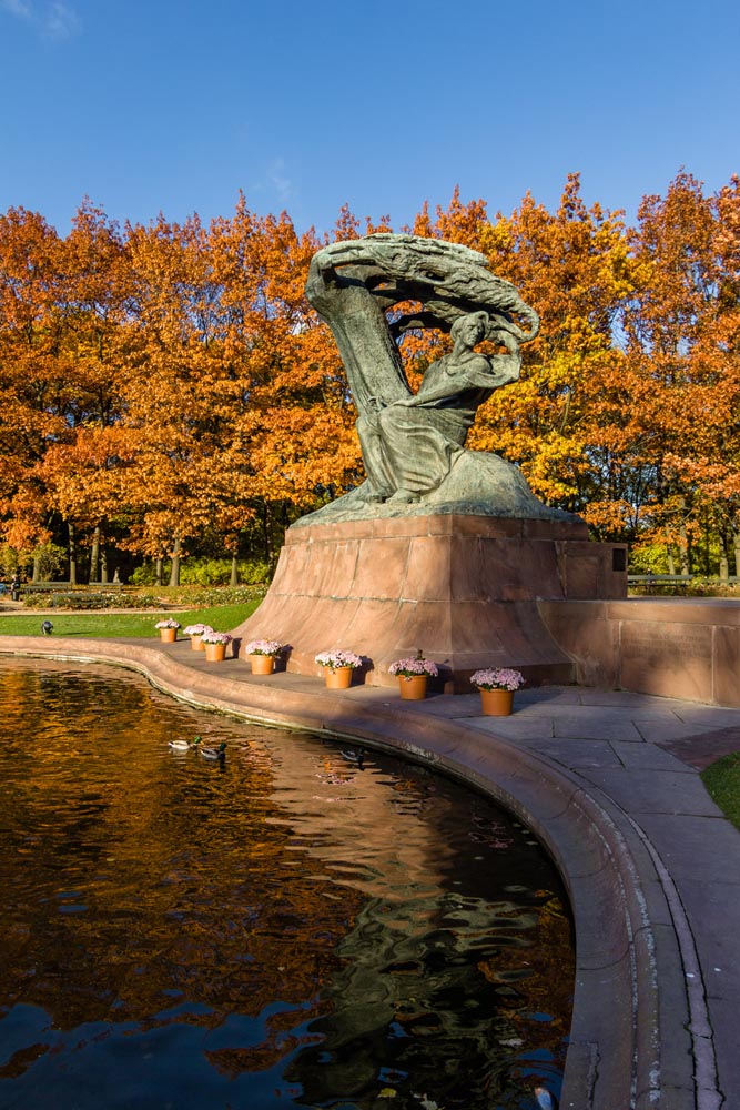 Żadne miejsce w Warszawie nie kojarzy się tak bardzo z naszym genialnym kompozytorem jak Łazienki Królewskie. To tutaj – nieopodal głównego wejścia od strony Alei Ujazdowskich – znajduje się najbardziej znany pomnik Chopina dłuta Wacława Szymanowskiego. Pod pomnikiem odbywają się także cyklicznie recitale chopinowskie (wznowione po pandemii). Kilka kroków dalej mieści się Belweder, w którym Chopin wielokrotnie bywał na zaproszenie wielkiego księcia Konstantego. Nie możemy także zapomnieć o wizycie w pałacu Ostrogskich, w Muzeum Fryderyka Chopina.