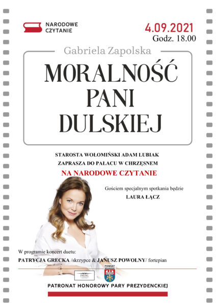 Starosta Wołomiński Adam Lubiak zaprasza do Pałacu w Chrzęsnem na Narodowe Czytanie „Moralności Pani Dulskiej” 2021