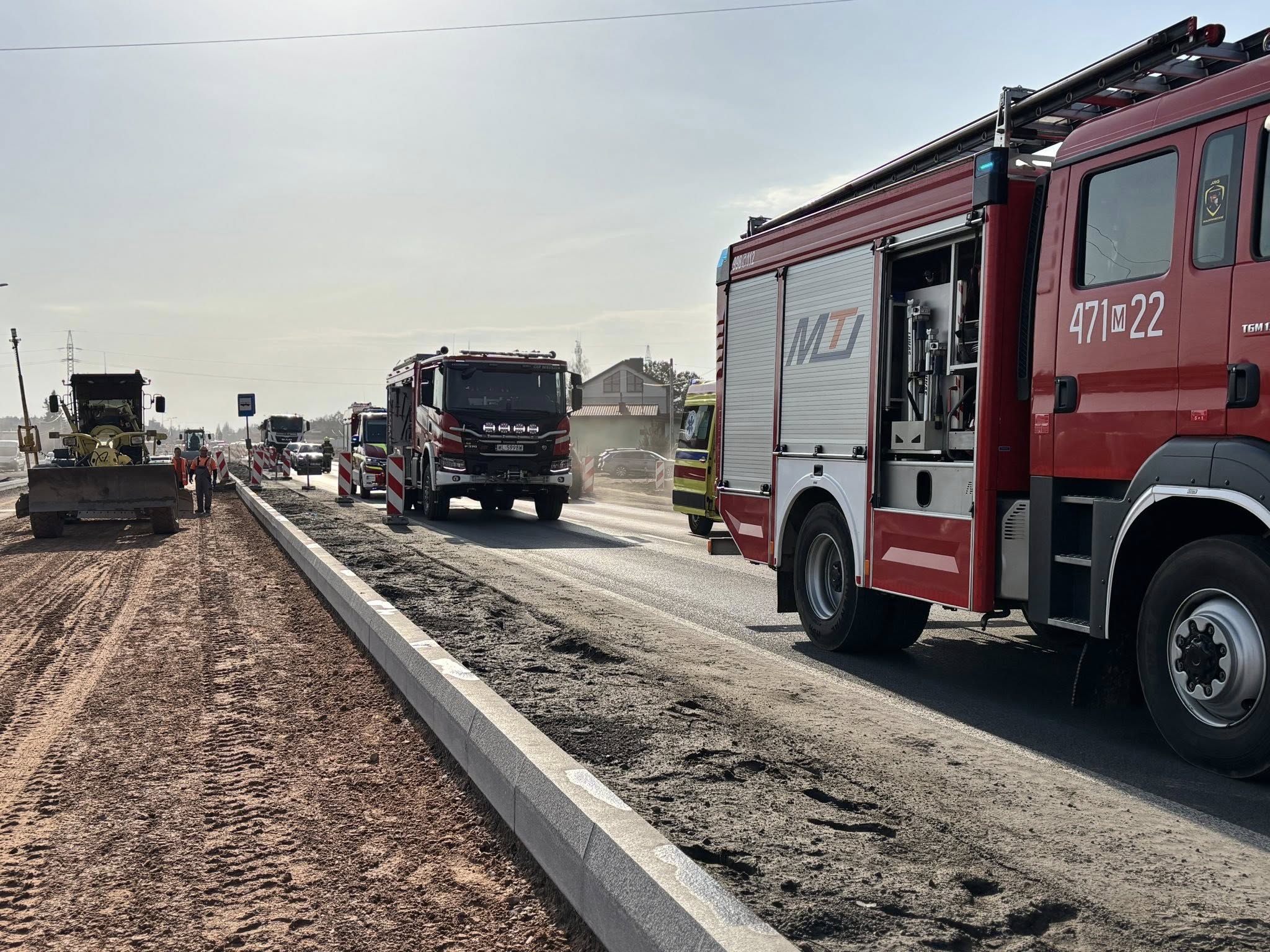 Auto stanęło w płomieniach na drodze. Interweniowało kilka zastępów straży pożarnej