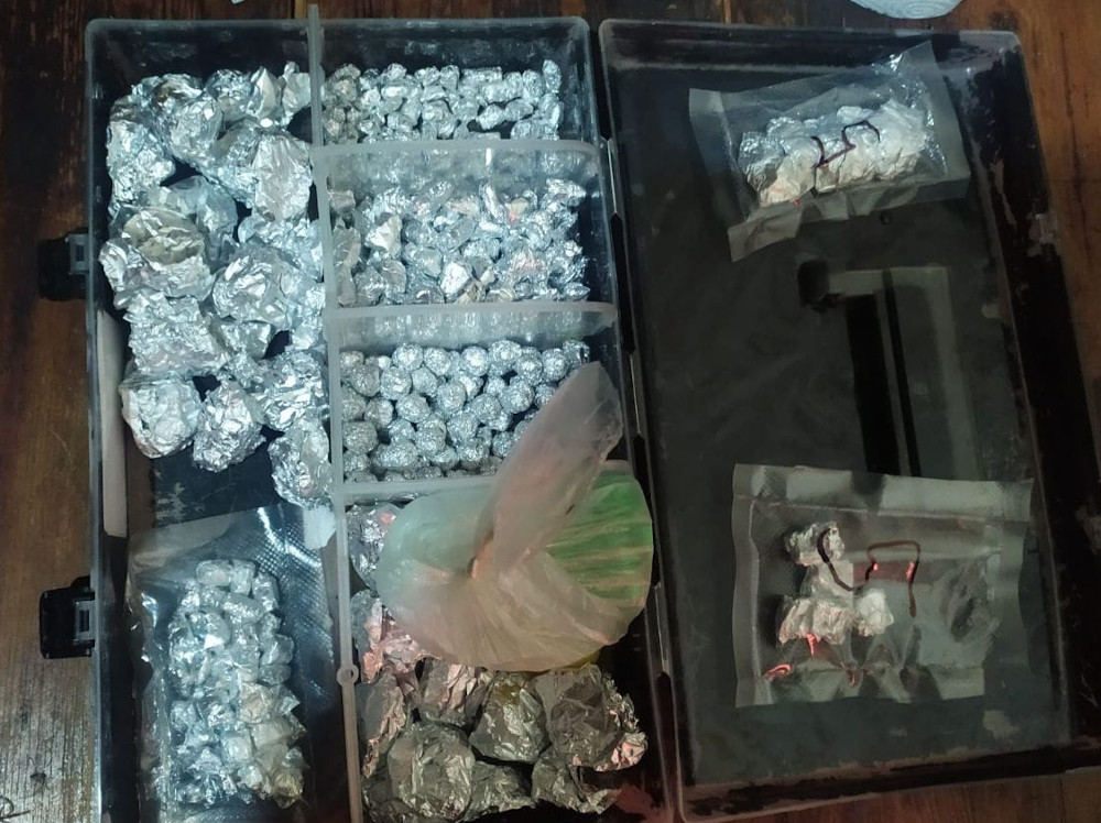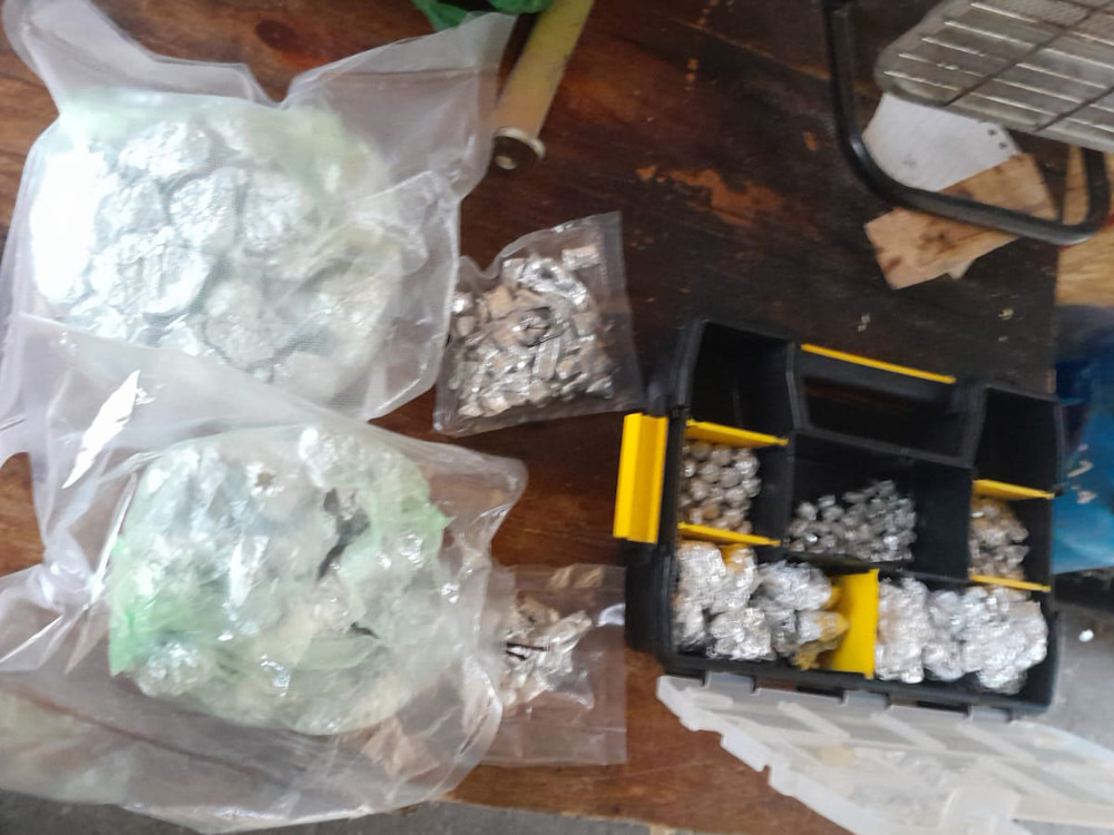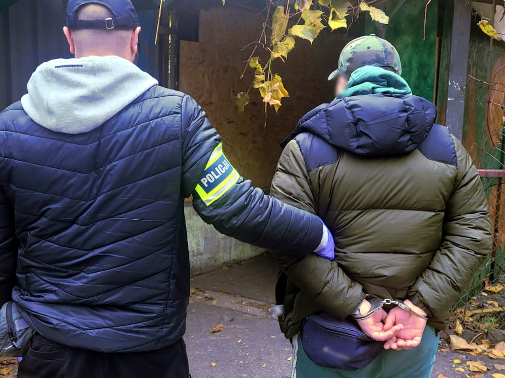 Gdy tym razem policjanci zbliżali się do podwórka, zauważyli jak będący na nim mężczyzna wrzuca na dach drewnianej wiaty pudełko oraz torbę. Zaskoczony widokiem funkcjonariuszy, nie reagując na okrzyk „Policja!”, próbował jeszcze uciec, bezskutecznie. Powodem ucieczki była zawartość odrzuconych przedmiotów. Nie było zaskoczeniem dla wywiadowców, że znaleźli w nich zawiniątka z heroiną, amfetaminą, marihuaną i mefedronem.