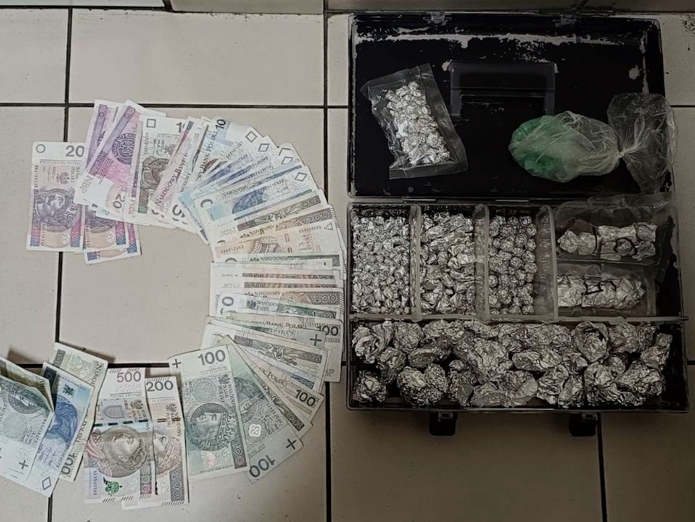 Pierwszy wpadł godzinę przed północą. Policjanci zbliżając się do jednej z bram zauważyli jak na podwórku w drewnianej wiacie pali się światło. Przed bramą stała „czujka”. Gdy pełniący tę rolę zorientował się, że prawdopodobnie zbliżają się policjanci, ostrzegł kolegę. Wywiadowcy wbiegli na dziedziniec i skierowali się w kierunku wiaty. W środku zastali zaskoczonego mężczyznę, który siedział na krześle i właśnie segregował w pudełku zawiniątka z folii aluminiowej. Było ich aż 410. Zawierały one marihuanę, heroinę, mefedron oraz amfetaminę. W pudełku znalazło się również prawie 80 tabletek MDPV. Przy zatrzymanym funkcjonariusze znaleźli ponad 4000 złotych. Narkotyki oraz gotówka zostały zabezpieczone, a 21-latek zatrzymany i przewieziony do policyjnego aresztu na Pradze Północ. Jego los podzielił stający przed bramą 29-latek, który ostrzegł młodszego kolegę o policyjnej akcji.