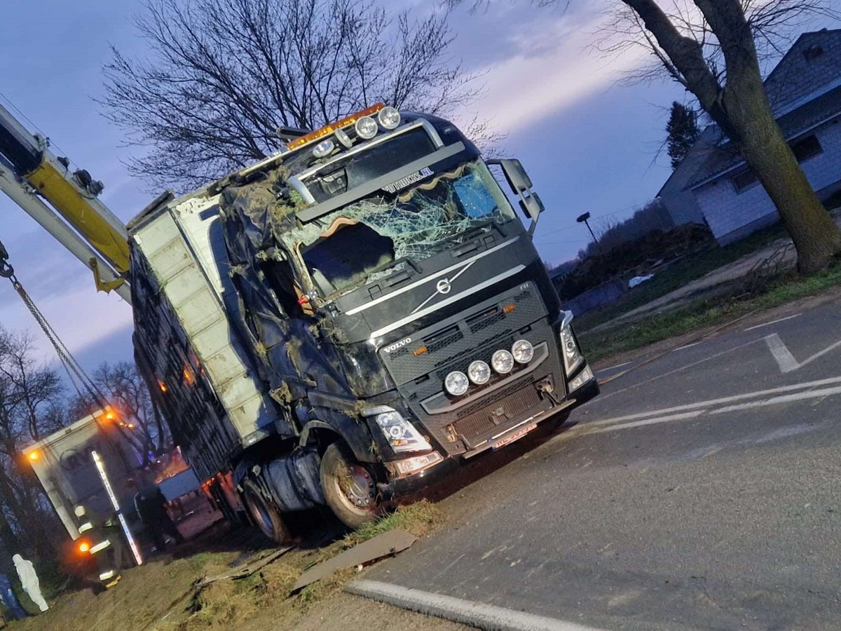 Wczoraj (10.04), około godziny 12:30 na drodze wojewódzkiej nr 544 w miejscowości Klewki doszło do zdarzenia drogowego z udziałem pojazdu ciężarowego marki Volvo przewożącego trzodę chlewną. Na miejsce szybko zadysponowano służby ratunkowe oraz lekarza weterynarii.