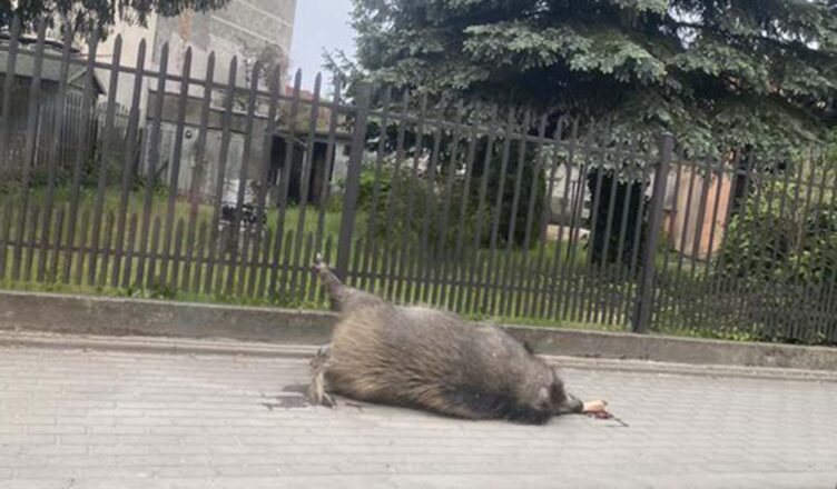 Zdechły dzik przeleżał przez ponad dobę na chodniku w Wołominie. W dodatku weterynarz odciął mu nogę w celu pobrania próbek badań.