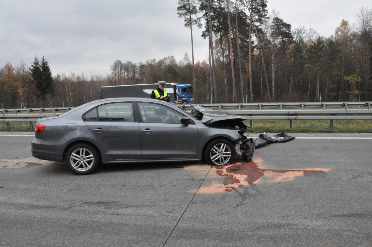 Wczoraj około godz. 12.00 na trasie S-8 w Trzciance na pasie w kierunku Warszawy, doszło do zderzenia trzech osobówek. Jak wynika ze wstępnych ustaleń funkcjonariuszy, kierowca volkswagena, nie dostosował prędkości do warunków panujących na drodze w wyniku czego, uderzył w unieruchomiony z powodu awarii pojazd marki citroen, stojący na lewym pasie, a następnie w jadącą prawym pasem ruchu skodę. W wyniku zdarzenia pojazd marki skoda wjechał do przydrożnego rowu. Na szczęście, w czasie zdarzenia kierowca citroena był poza pojazdem. Wszyscy kierujący byli trzeźwi i żaden z nich nie odniósł poważnych obrażeń ciała. Droga w miejscu zdarzenia był zablokowana, a funkcjonariusze kierowali wszystkich na objazdy.