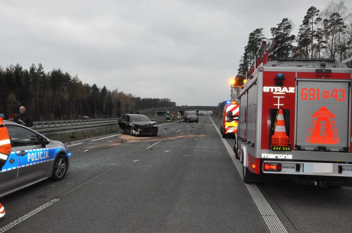 Zderzenie trzech samochodów na S8. Dokładne okoliczności tego zdarzenia wyjaśniają wyszkowscy policjanci. Mundurowi apelują do kierowców o zachowanie ostrożności i dostosowanie prędkości do warunków na drodze.