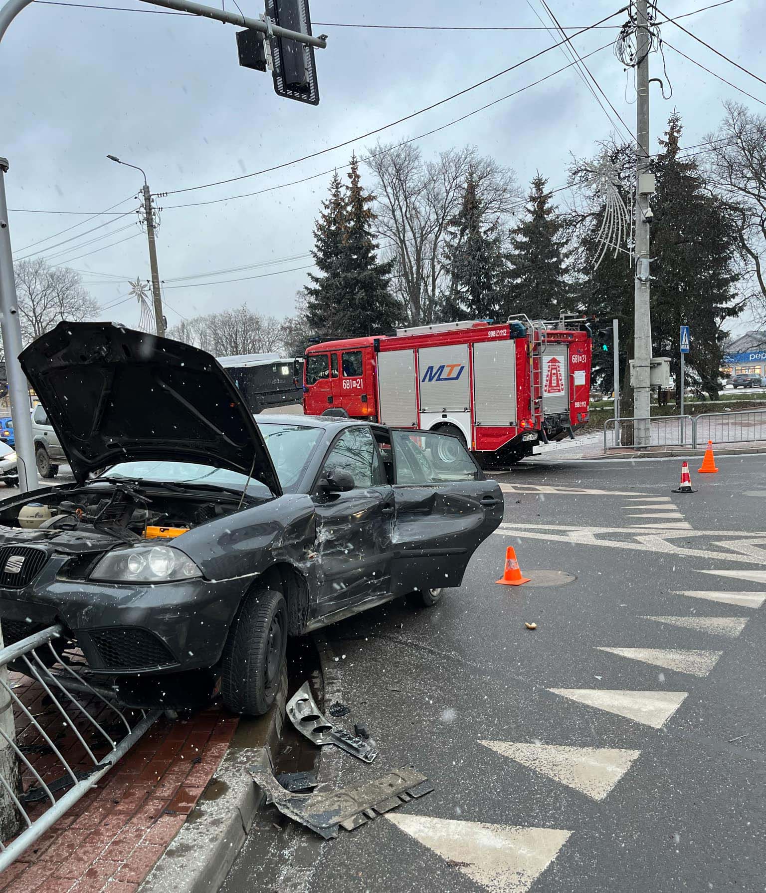 W Wołominie 3 stycznia tuż przed godziną 8:30 doszło do zderzenia samochodu osobowego oraz autobusu komunikacji miejskiej. Na miejsce zdarzenia szybko przybyły zastępy straży pożarnej z JRG Wołomin oraz OSP Wołomin, które zabezpieczyły teren i przystąpiły do działań ratunkowych.
