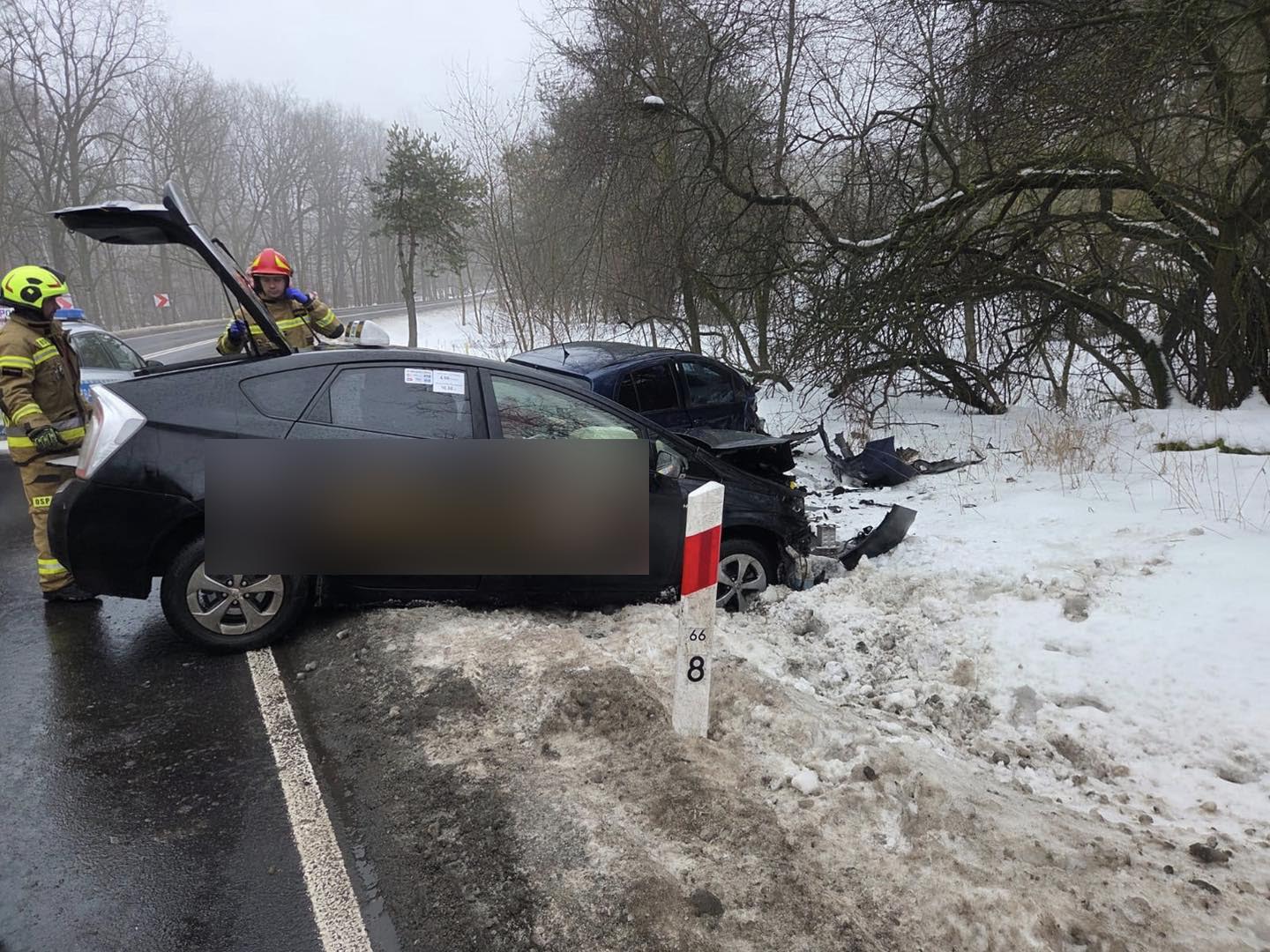 Tragiczny wypadek w Prabutach. Czołowe zderzenie na oblodzonej drodze – jedna osoba nie żyje, pięć rannych