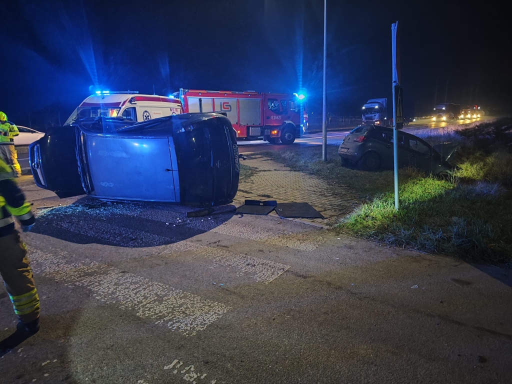 Dachowanie w miejscowości Kury. Interwencja służb ratunkowych po groźnym zdarzeniu drogowym
