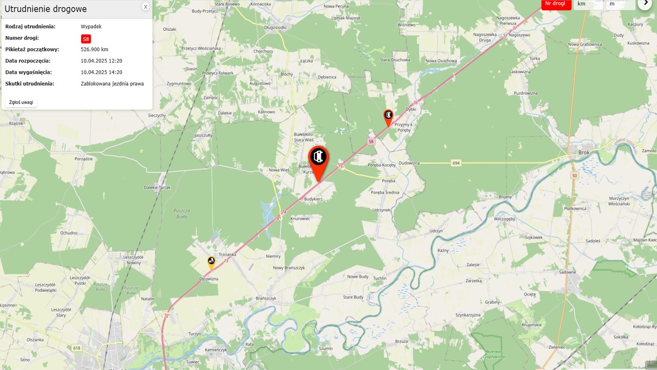 10 kwietnia na trasie ekspresowej S8, w rejonie miejscowości Budykierz (powiat wyszkowski), doszło do kolejnego poważnego wypadku z udziałem pojazdów ciężarowych. Tym razem nie zawiodła technika, lecz ludzka koncentracja. Z wstępnych ustaleń wynika, że 38-letni kierowca jednej z ciężarówek nie zauważył stojącego w korku pojazdu i z dużą siłą najechał na jego tył. Kolizja miała miejsce na odcinku w kierunku Białegostoku, niedługo po wcześniejszym, śmiertelnym zdarzeniu w sąsiednim powiecie ostrowskim, które spowodowało utrudnienia w ruchu.