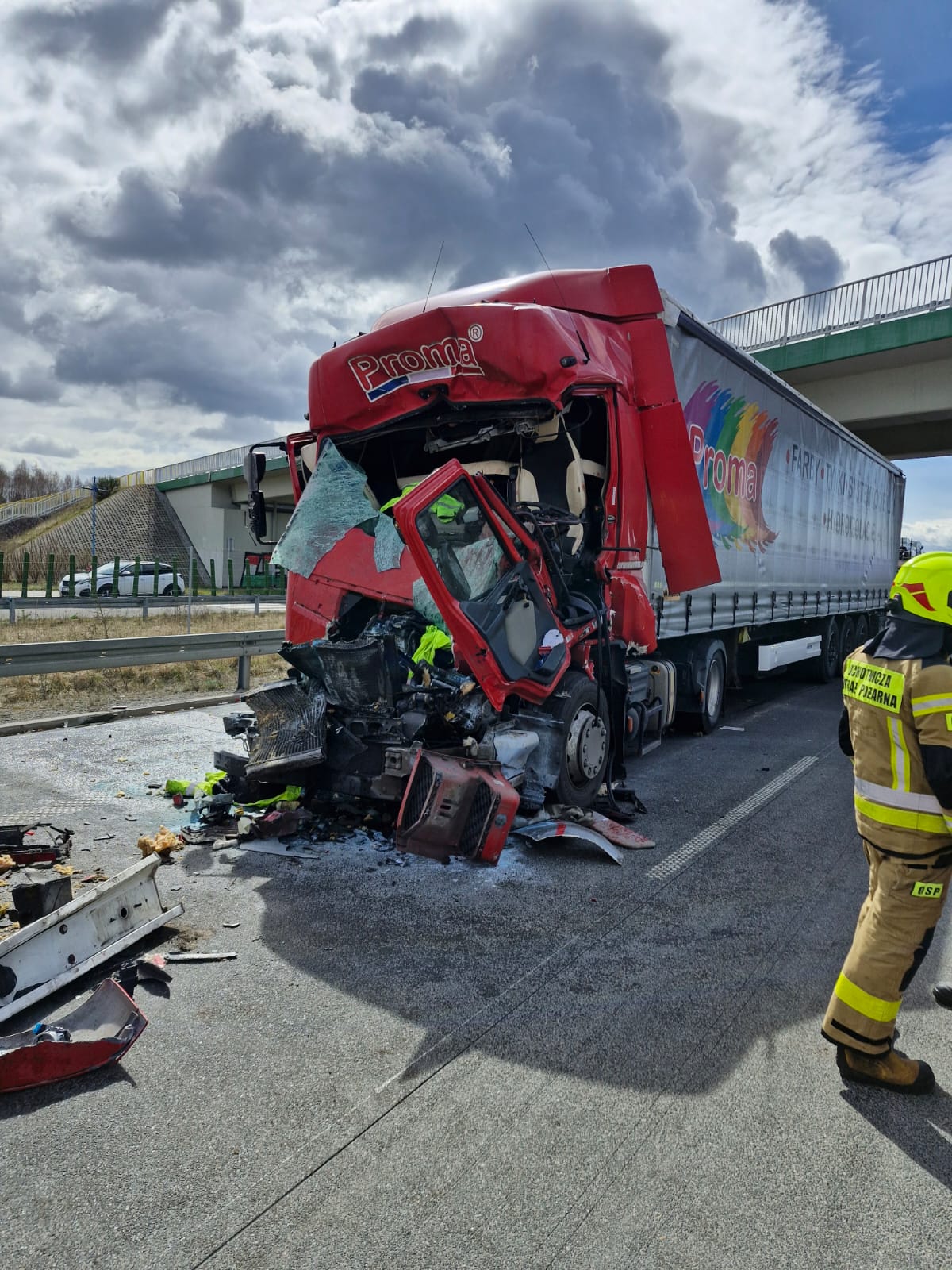 W wyniku zderzenia kabina jednej z ciężarówek została poważnie zniszczona, a kierowca – zakleszczony w jej wnętrzu – wymagał natychmiastowej pomocy. Na miejsce zadysponowano pięć zastępów straży pożarnej, zespół ratownictwa medycznego oraz śmigłowiec Lotniczego Pogotowia Ratunkowego.