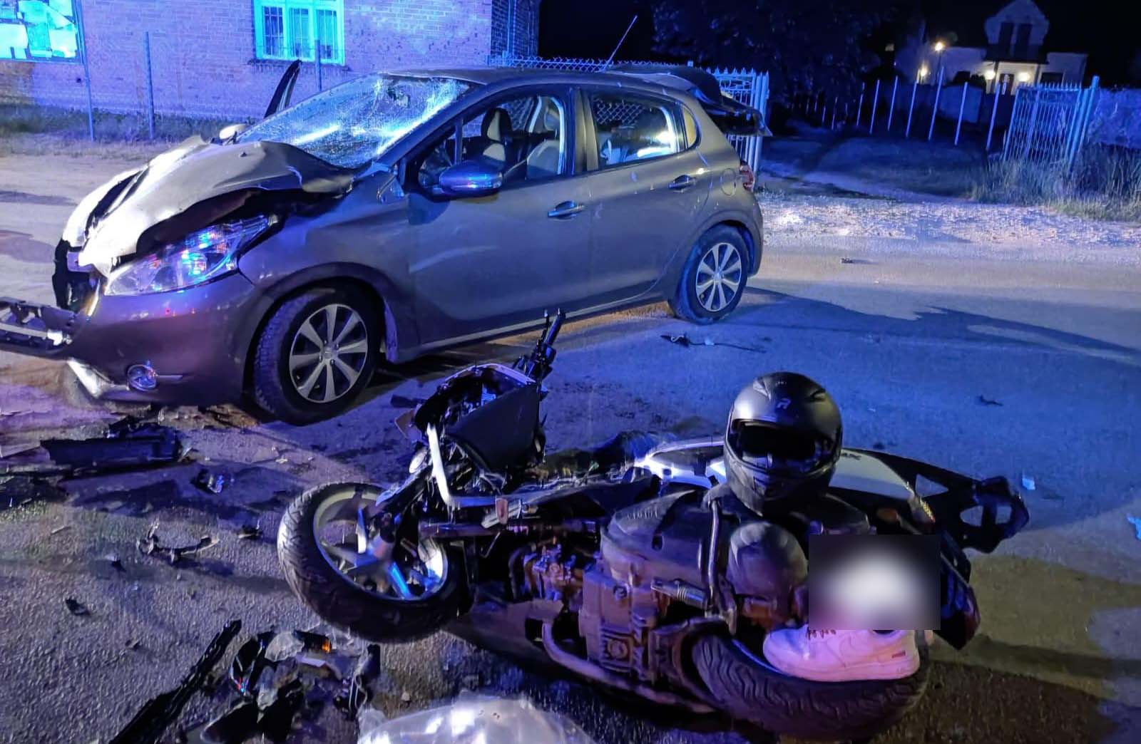 Po przybyciu na miejsce zdarzenia zastępów straży stwierdzono, że doszło do zderzenia czołowego skutera oraz samochodu osobowego, jedna osoba została poszkodowana. ZRM przybyły przed jednostkami straży pożarnej udzielał pomocy medycznej kierowcy jednośladu.