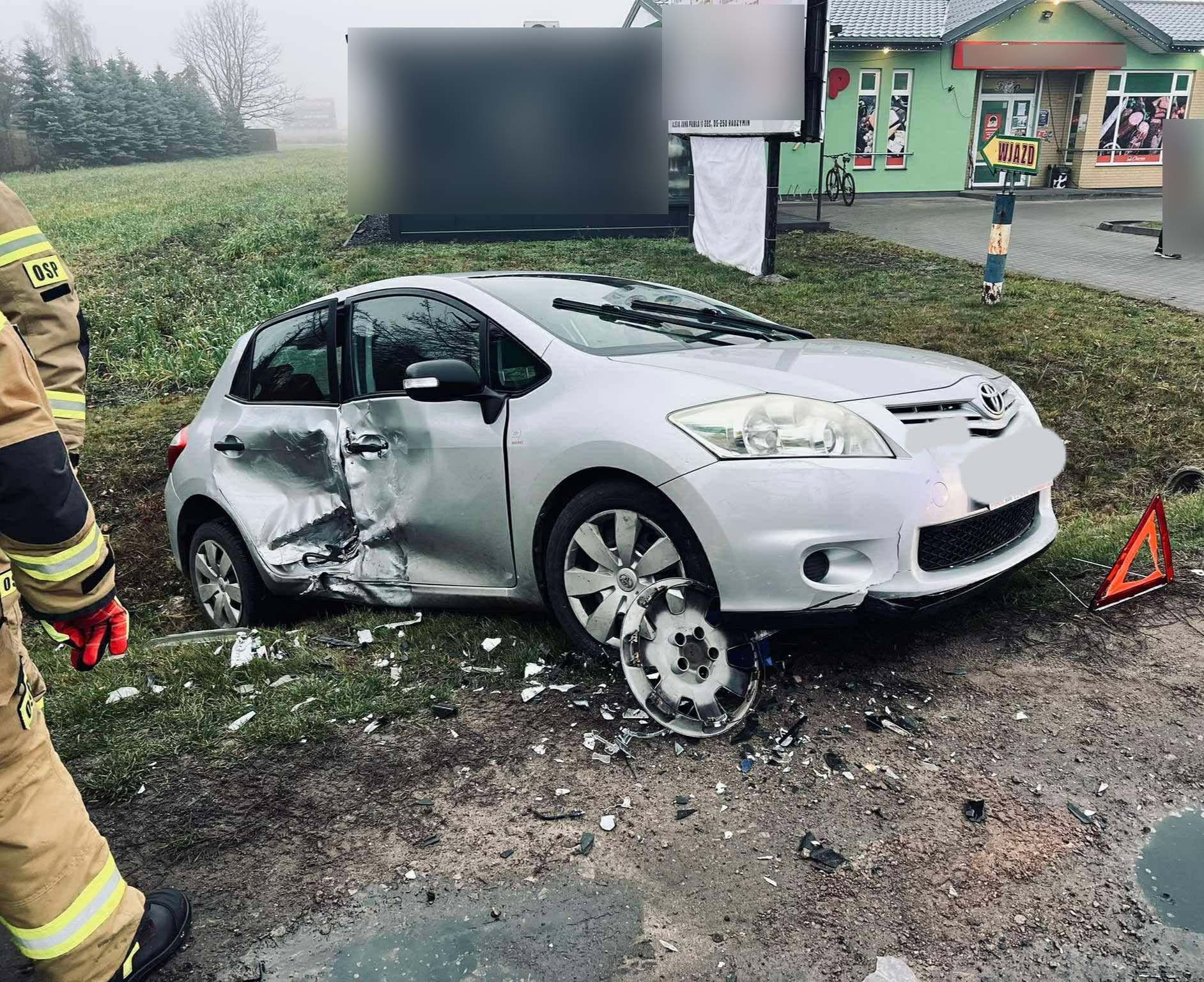 Groźny wypadek w Łuczynowie. Niedostosowanie prędkości doprowadziło do poważnych zniszczeń.