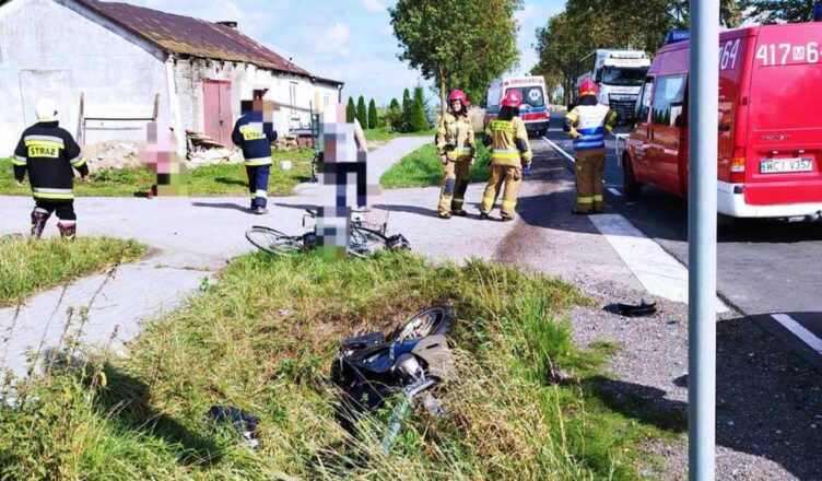 Trwają czynności ciechanowskiej policji w sprawie zdarzenia drogowego z udziałem rowerzysty i kierującego motocyklem Kawasaki. 57-letni rowerzysta, z obrażeniami ciała został przetransportowany do szpitala. Policjanci apelują o ostrożność i przestrzeganie przepisów. Niechronieni uczestnicy ruchu drogowego są najbardziej narażeni na poważne konsekwencje zdarzeń drogowych.