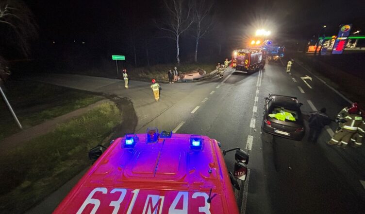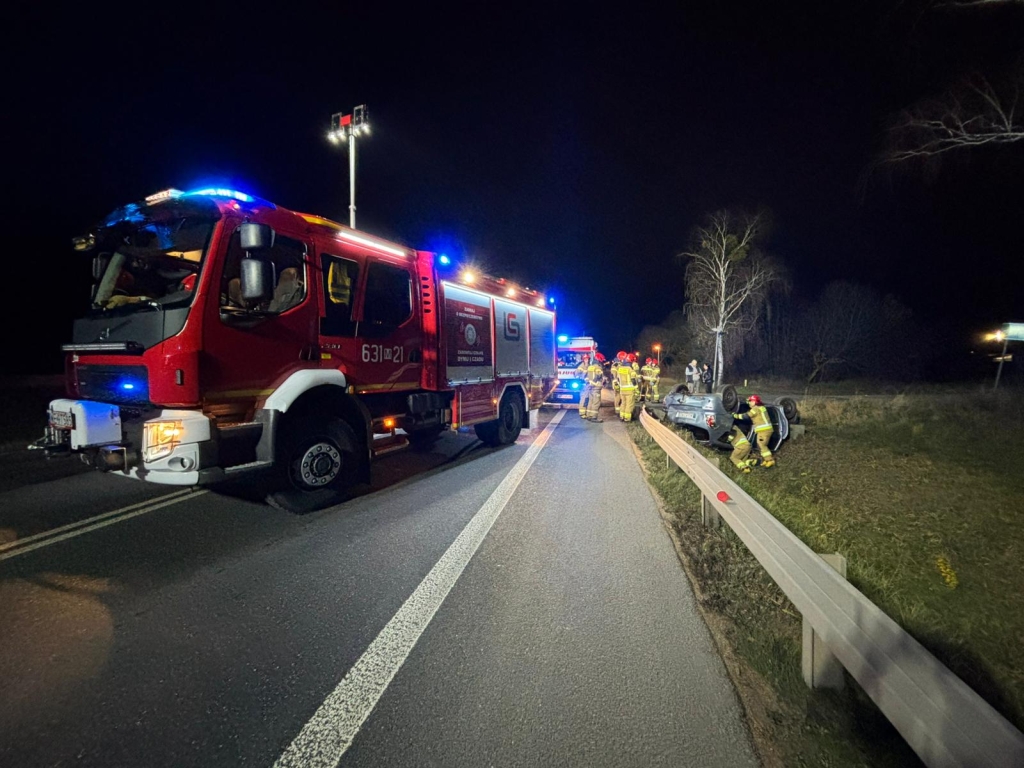 Zderzenie trzech samochodów na DK50. Jedno z aut dachowało.