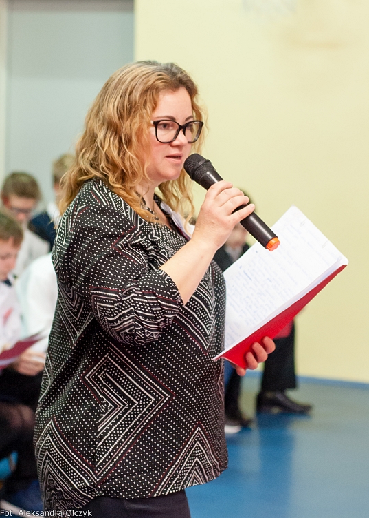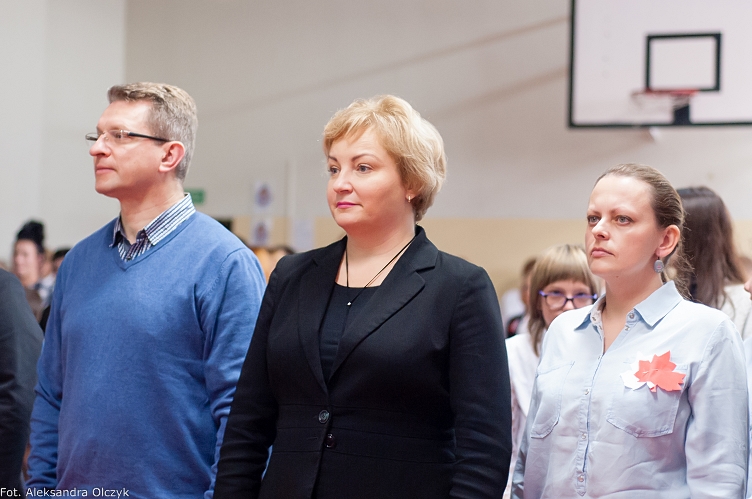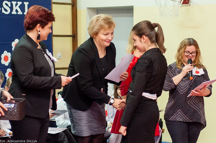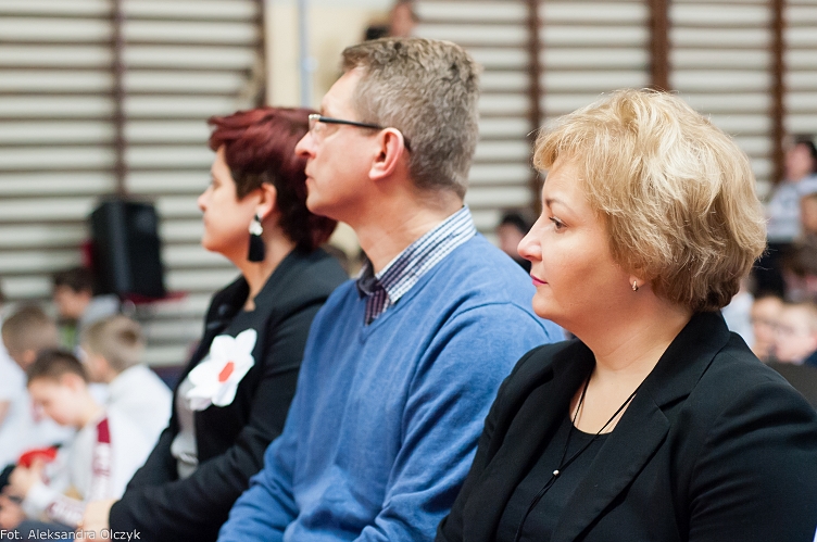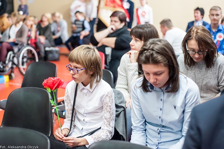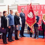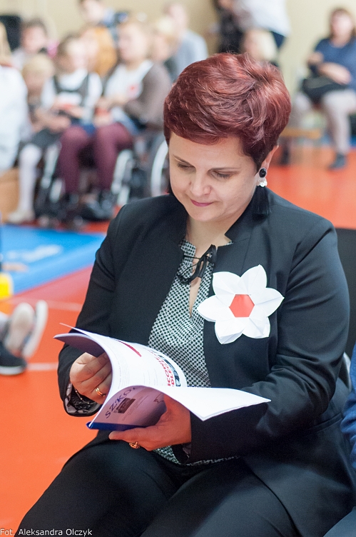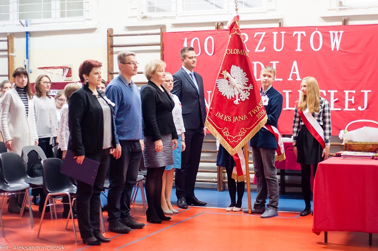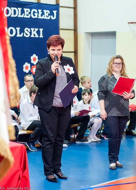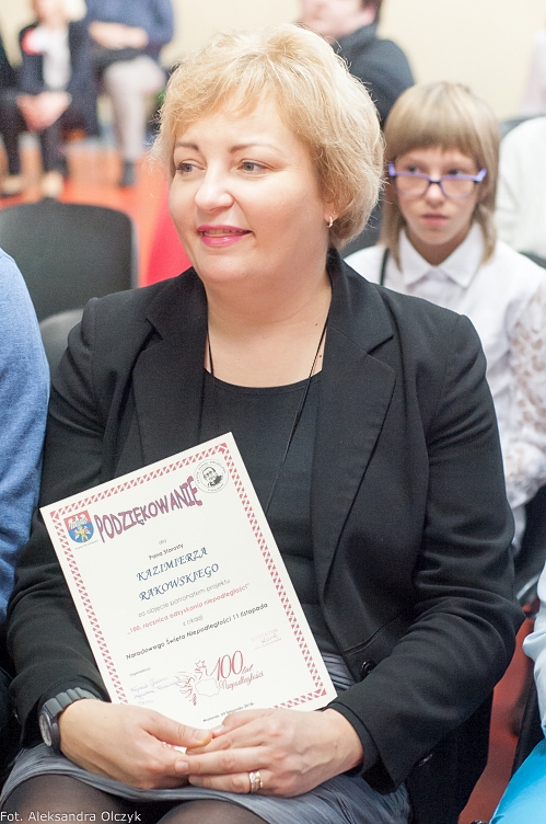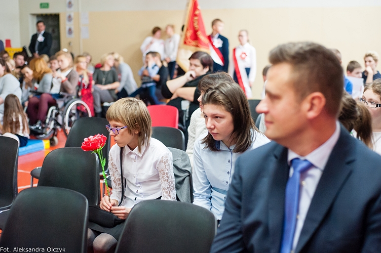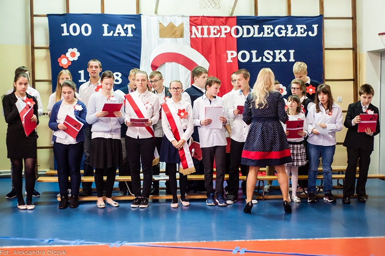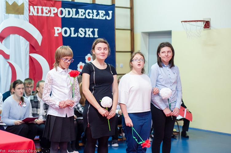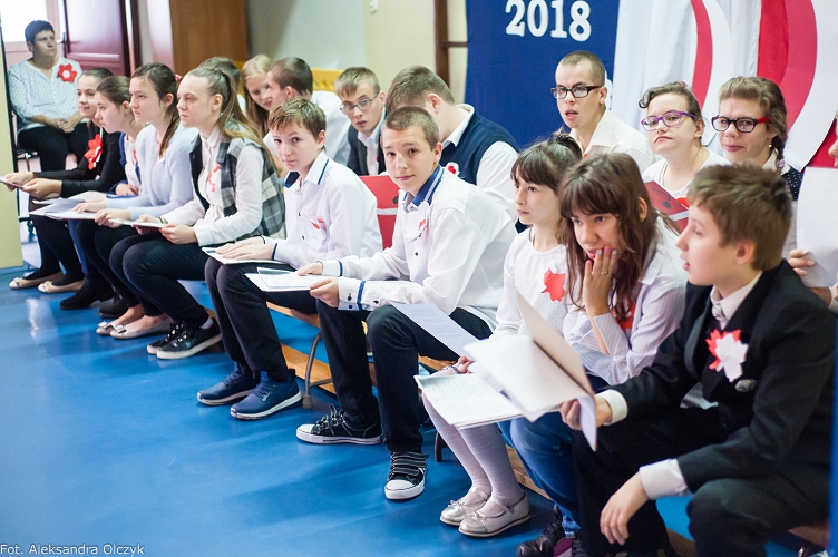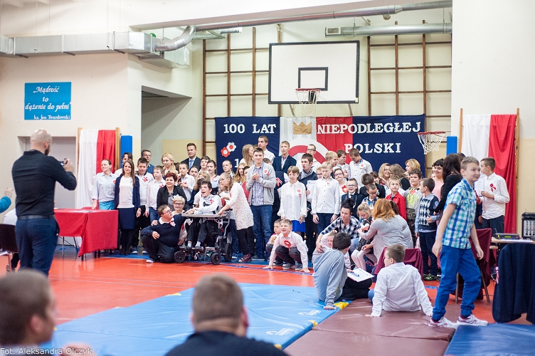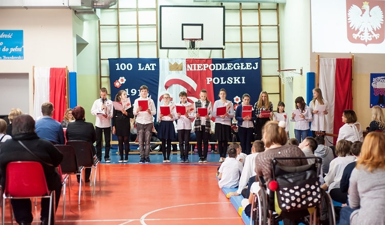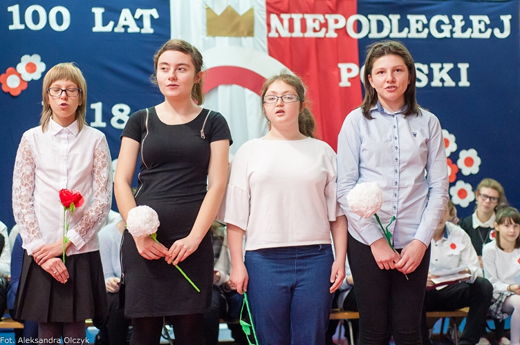 Realizacja projektu ?100. rocznica odzyskania niepodległości przez Polskę? pod patronatem Starosty Wołomińskiego rozpoczęła się w kwietniu 2018 roku konkursem wiedzy historycznej ?W drodze do niepodległości?, a zakończyła 9 listopada 2018 roku uroczystą akademią w siedzibie Zespołu Szkół Specjalnych w Wołominie. Na uroczystości byli obecni: naczelnik Wydziału Oświaty Olga Wileńska, przewodniczący Rady Rodziców pan Michał Puchta, nauczyciele i uczniowie ze Szkoły Podstawowej Specjalnej w Radzyminie, przedstawiciele lokalnej prasy. Wszyscy zgromadzeni na sali gimnastycznej punktualnie o godzinie 11.11 odśpiewali cztery zwrotki hymnu Polski. Dyrektor Monika Kisielińska powitała gości, uczniów, rodziców, nauczycieli obu szkół. W imieniu Starosty Wołomińskiego głos zabrała Olga Wileńska. Uczniowie ze szkoły w Radzyminie zaśpiewali wzruszającą pieśń ?Marsz pierwszej brygady?, a uczniowie ze szkoły w Wołominie zaprezentowali przepiękne wiersze i piosenki poświęcone walce i tęsknocie Polaków za wolną Ojczyzną. Naczelnik Wydziału Oświaty Olga Wileńska oraz dyrektor M. Kisielińska i dyrektor M. Nowakowska wręczyły dyplomy i nagrody uczestnikom projektu ? uczniom obu szkół, a także nauczycielom i pracownikom zaangażowanym w przygotowanie projektu. Olga Wileńska pogratulowała dyrektorom, którzy również otrzymali pamiątkowe dyplomy. Na jej ręce zostało przekazane podziękowanie dla starosty Kazimierza Rakowskiego za objęcie patronatem projektu ?100. rocznica odzyskania niepodległości przez Polskę?. Następnie wszyscy z przyjemnością obejrzeli fotorelację z realizacji projektu i zapoznali się ze specjalnym wydaniem pisemka ?Szkolniaczek? poświęconego setnej rocznicy odzyskania przez Polskę niepodległości. Akademię zakończono wspólnym zaśpiewaniem pieśni pt. ?Rota?.