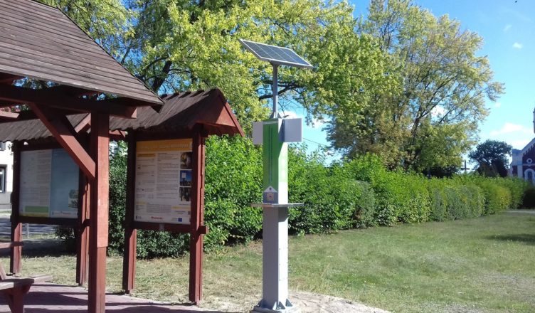W dniu 7 września 2019r. w ramach działań promocyjnych dotyczących projektu ?Proekologiczne inwestycje w OZE źródłem oszczędności mieszkańców gmin Stoczek, Strachówka, Długosiodło i Jadów? w miejscowości Jadów, tuż przy wiacie rowerowej pojawiło się urządzenie Zielonej Ładowarki.