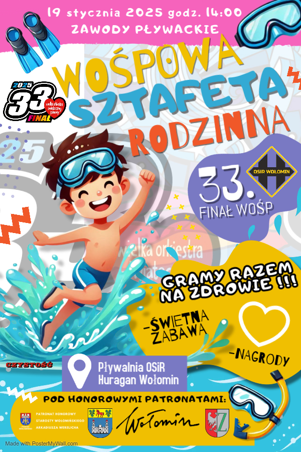 Zawody pływackie „WOŚPowa Sztafeta Rodzinna” są częścią tegorocznego Finału Wielkiej Orkiestry Świątecznej Pomocy. Wydarzenie patronatem objął Burmistrz Miasta Zielonka.