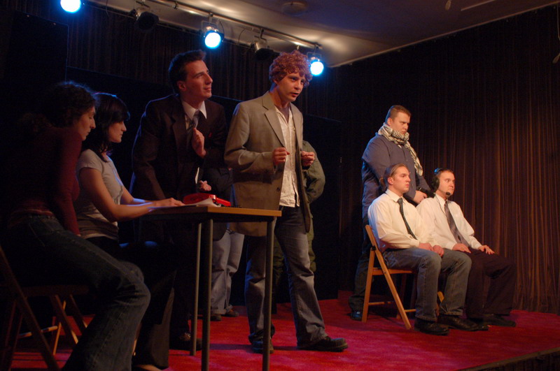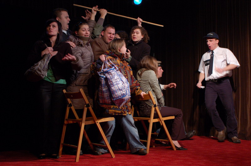 Dynamiczny, kipiący humorem spektakl podzielony jest na pięć niezależnych części. Każda z nich stanowi adaptację krótkiego utworu teatralnego („Głowa do pozłoty”, „Autobus”, „Jak się terroryzuje terrorystów” autorstwa Ephraima Kishona, „Choinka” Kornela Makuszyńskiego” oraz skecz radiowy Janusza Osęki pt. „Na planie”.
