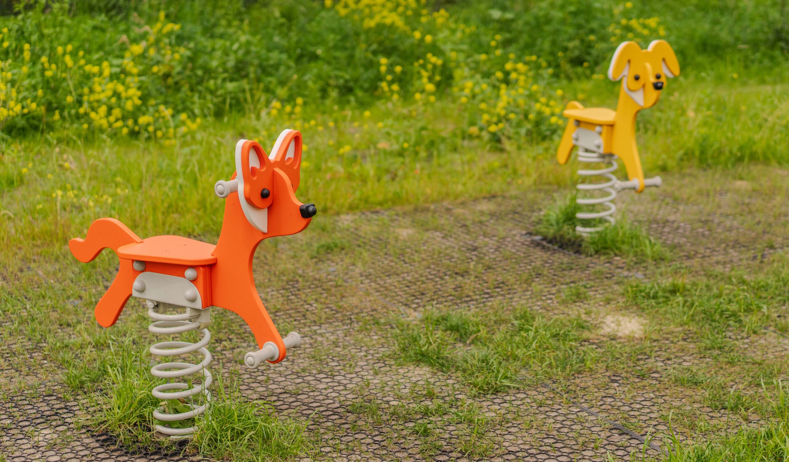Z myślą o najmłodszych na placu pojawiły się trzy kolorowe bujaki na sprężynach w kształcie zwierząt – proste, bezpieczne i uwielbiane przez dzieci, które dopiero zaczynają swoją przygodę z placem zabaw. Jest też karuzela – klasyczna, dobrze znana atrakcja, która wciąż daje mnóstwo radości najmłodszym.