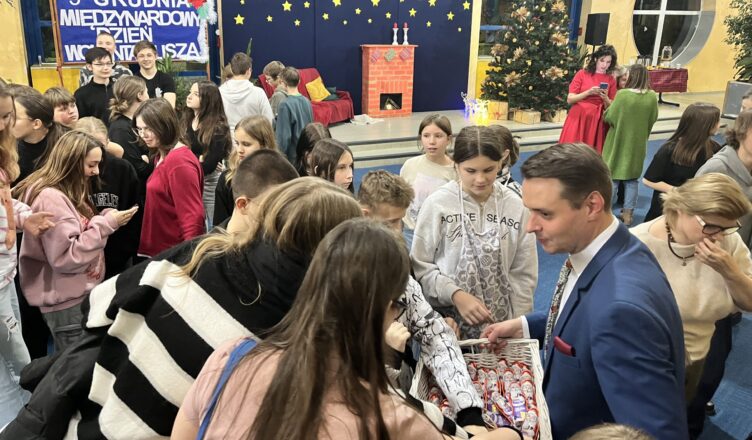 Uczniów i wolontariuszy piekących pierniki odwiedził Burmistrz Miasta Kamil Michał Iwandowski. Osobiście złożył im podziękowania za czas i serce, które wkładają w swoją bezinteresowną pracę. Każdy wolontariusz otrzymał drobny, słodki prezent w postaci czekoladowego Mikołaja.