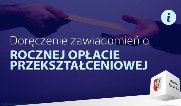Do końca lutego pracownicy Urzędu Miasta Zielonka dostarczą zawiadomienia o opłacie przekształceniowej. Zawiadomienia trafią wyłącznie do osób, które nabyły prawo własności gruntów przez przekształcenie użytkowania wieczystego w prawo własności i które wnoszą z tego tytułu opłaty. Jeśli doręczenie pod wskazany adres nie będzie możliwe, zawiadomienia trafią do Państwa skrzynek pocztowych jako list polecony.