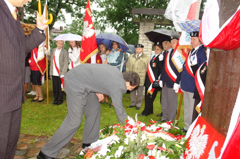 Pomimo zimna i ciągłych opadów deszczu wszystkie poczty sztandarowe i delegacje spotkały się pod pomnikiem upamiętaniającym przykre wydarzenie sprzed 63 lat.