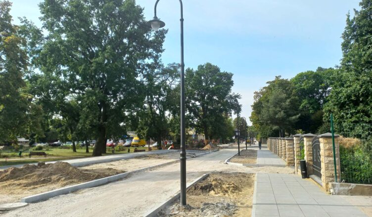 Ułożono już także chodnik na odcinku od ulicy Gromali do ulicy Kolejowej – tutaj zbudowany został on z dużych, betonowych płyt chodnikowych. Tego rodzaju chodnik będzie dobrze komponować się z granitową kostką, która zostanie ułożona na ulicy. Całość będzie wyglądać efektownie i reprezentacyjnie.