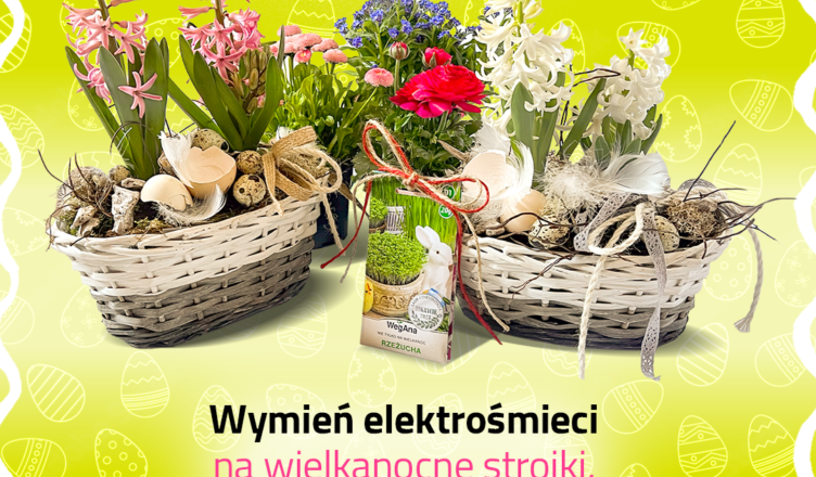 Już w najbliższą sobotę, w zamian za elektrośmieci, będą czekały wielkanocne upominki – stroiki świąteczne, sadzonki kwiatów i pakiety nasion. Zachęcamy do udziału w akcji. Niech tegoroczne święta będą nie tylko piękne, ale i bardziej eko.