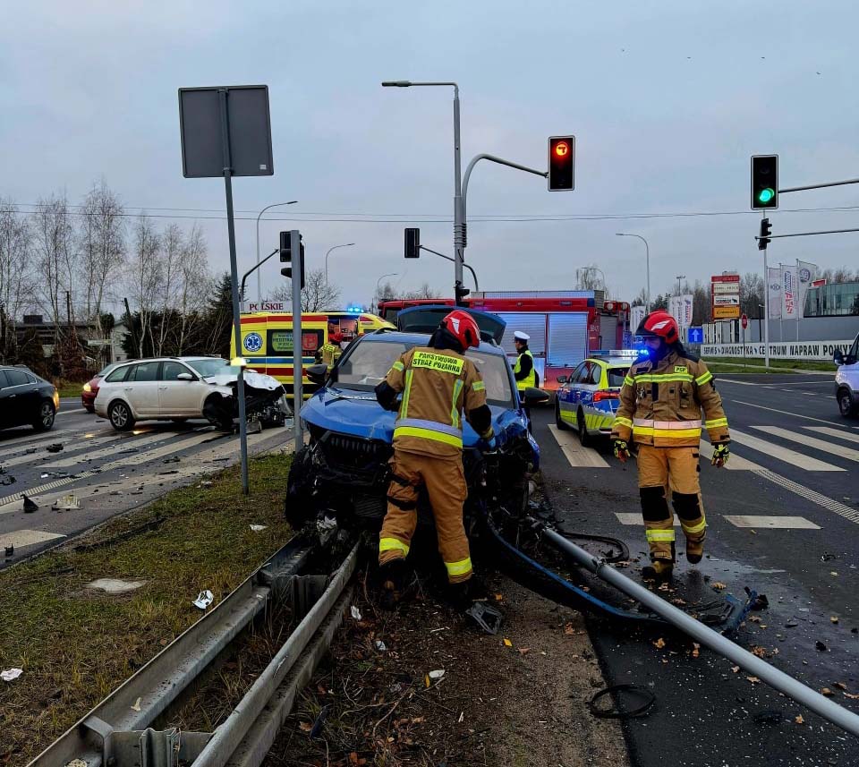 40-letnia kierująca Skodą zignorowała czerwone światło na sygnalizatorze, wjeżdżając na skrzyżowanie i doprowadzając do zderzenia z innym pojazdem, poruszającym się Al. Krakowską w kierunku Warszawy. Na szczęście nikomu nic się nie stało.