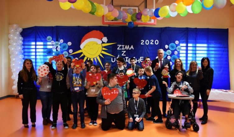 Adam Lubiak – Starosta Wołomiński wraz z Hanną Skrzypczak Naczelnik Wydziału Edukacji i Kultury, Agatą Żędzian Zastępcą Dyrektora Powiatowego Centrum Pomocy Rodzinie i Anną Woźniak Dyrektor Szkole Podstawowej Specjalnej im. Marii Konopnickiej w Radzyminie, dokonali inauguracji powiatowych zajęć profilaktycznych i kulturalno-sportowych dla uczniów szkół specjalnych organizowane przez Powiat Wołomiński w ramach akcji „Zima z Uśmiechem 2020”.