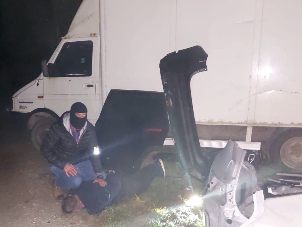 Kiedy funkcjonariusze dotarli na posesję, gdzie miał trafić skradziony pojazd, w pomieszczeniach gospodarczych znaleźli rozebrane już na części auto i uciekających z zabudowań dwóch mężczyzn, wśród nich 33-latka, podejrzewanego o kradzież. Policjanci rozpoczęli pościg i już po kilkunastu metrach uciekający zostali zatrzymani. W pomieszczeniu, w którym samochód był demontowany policjanci zastali również dwóch innych mężczyzn.