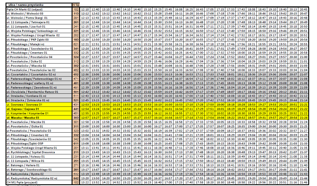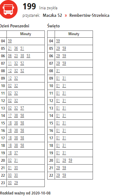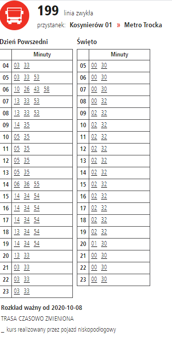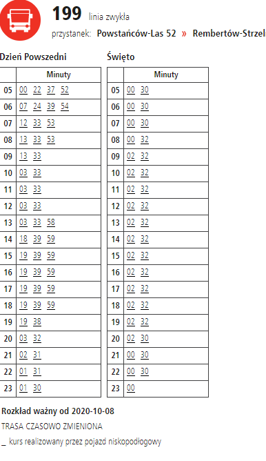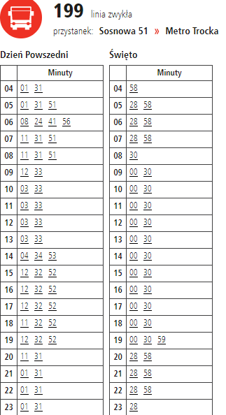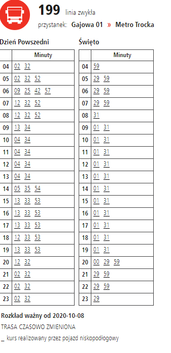 Kursowanie linii 199 odbywać się będzie według specjalnego rozkładu jazdy.