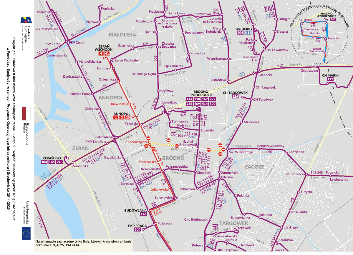 W czasie budowy metra stacji metra na Bródnie zostaną wprowadzone zmiany w komunikacji miejskiej.