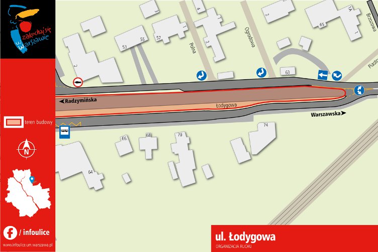 W związku z kolejnym etapem przebudowy ulicy Łodygowej i przełożeniem ruchu na jezdnie boczne (pomiędzy ulicą Klamrową a ulicą Piastowską) od dnia 31.03.2019 r. od około godz. 21:00 do odwołania  zawiesza się funkcjonowanie przystanków  KLAMROWA 01 i 02, funkcjonujących jako  stałe dla linii 145 i 345 oraz jako warunkowe dla linii N62.