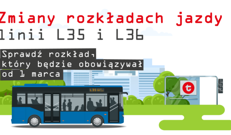 Od 1 marca 2021 r. nastąpią zmiany w rozkładach jazdy dla linii L35 oraz L36 (dni powszednie i weekendy). Dla linii lokalnej ? L35, przywrócona zostanie obsługa przystanków przy ul. Willowej w Duczkach.