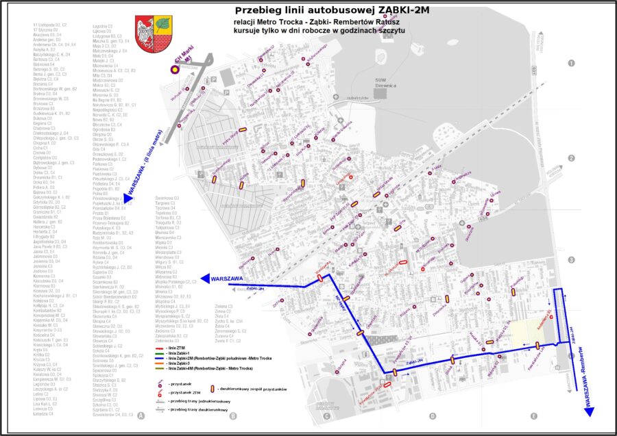 Ze względu na warunki i ograniczenia narzucone przez ZTM Warszawa na korzystanie z pętli przy stacji Metro Trocka (możliwość postoju tylko jednego autobusu i to przez bardzo krótki czas) oraz brak możliwości realizowania wydłużonych postojów na terenie Rembertowa– autobusy linii Ząbki-2M i 4M będą na wybranych kursach realizować dodatkowe postoje na trasie: rano i w ciągu dnia na przystankach Andersena, a po południu na przystanku Powstańców Park 02. Postoje umożliwią realizację wymaganych przerw dla kierowców oraz utrzymanie synchronizacji z innymi rozkładami- np. pociągów. – postoje są zaznaczone na rozkładzie jazdy.