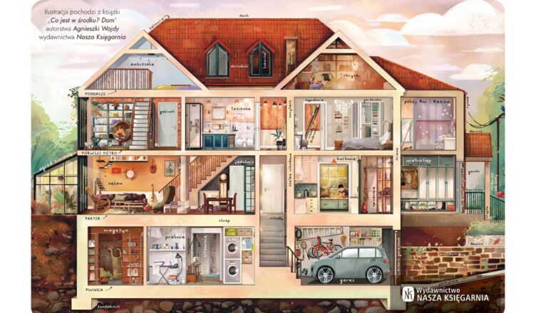 Ilustracja pochodzi z książki „Co jest w środku? Dom” autorstwa Agnieszki Wajdy, Wydawnictwo Nasza Księgarnia