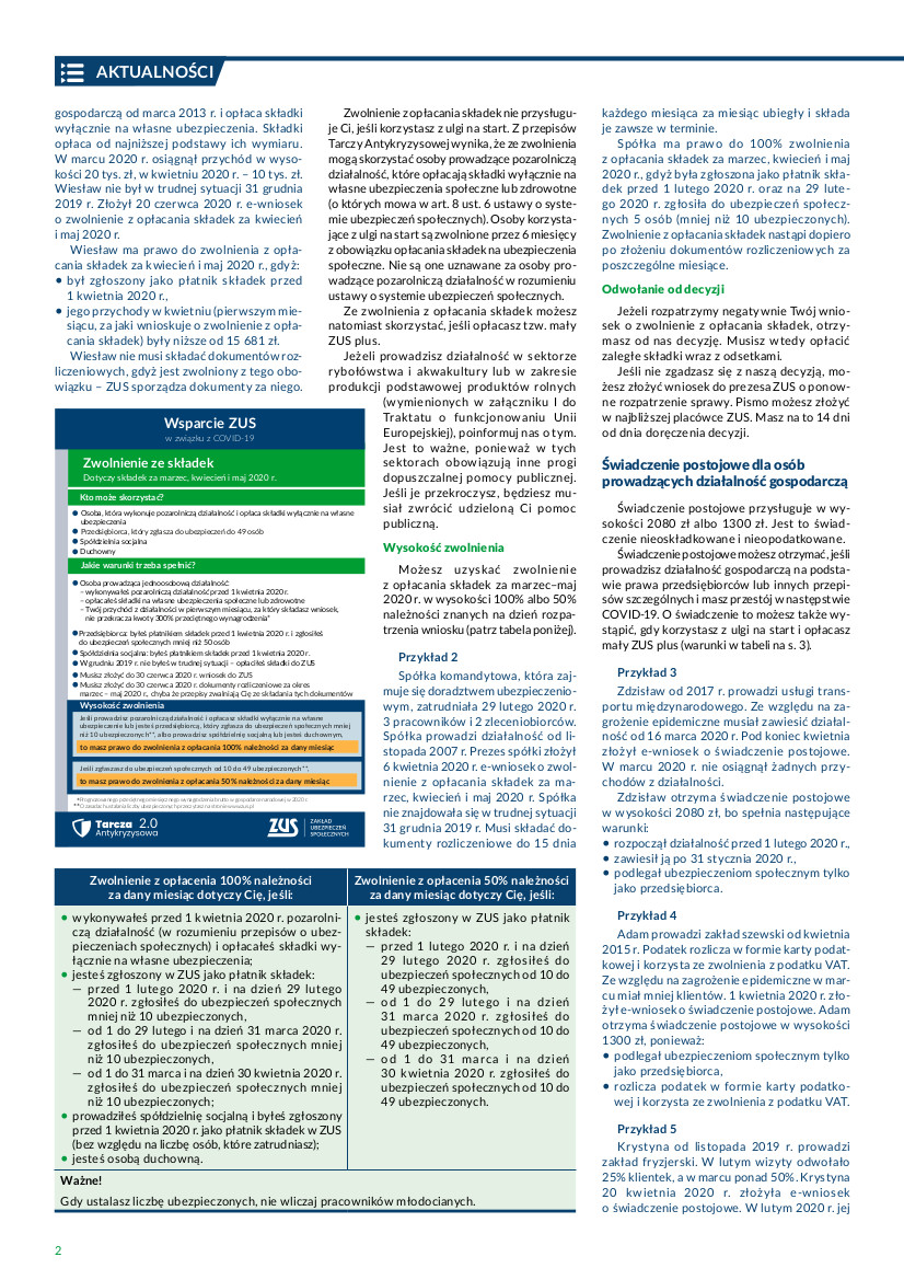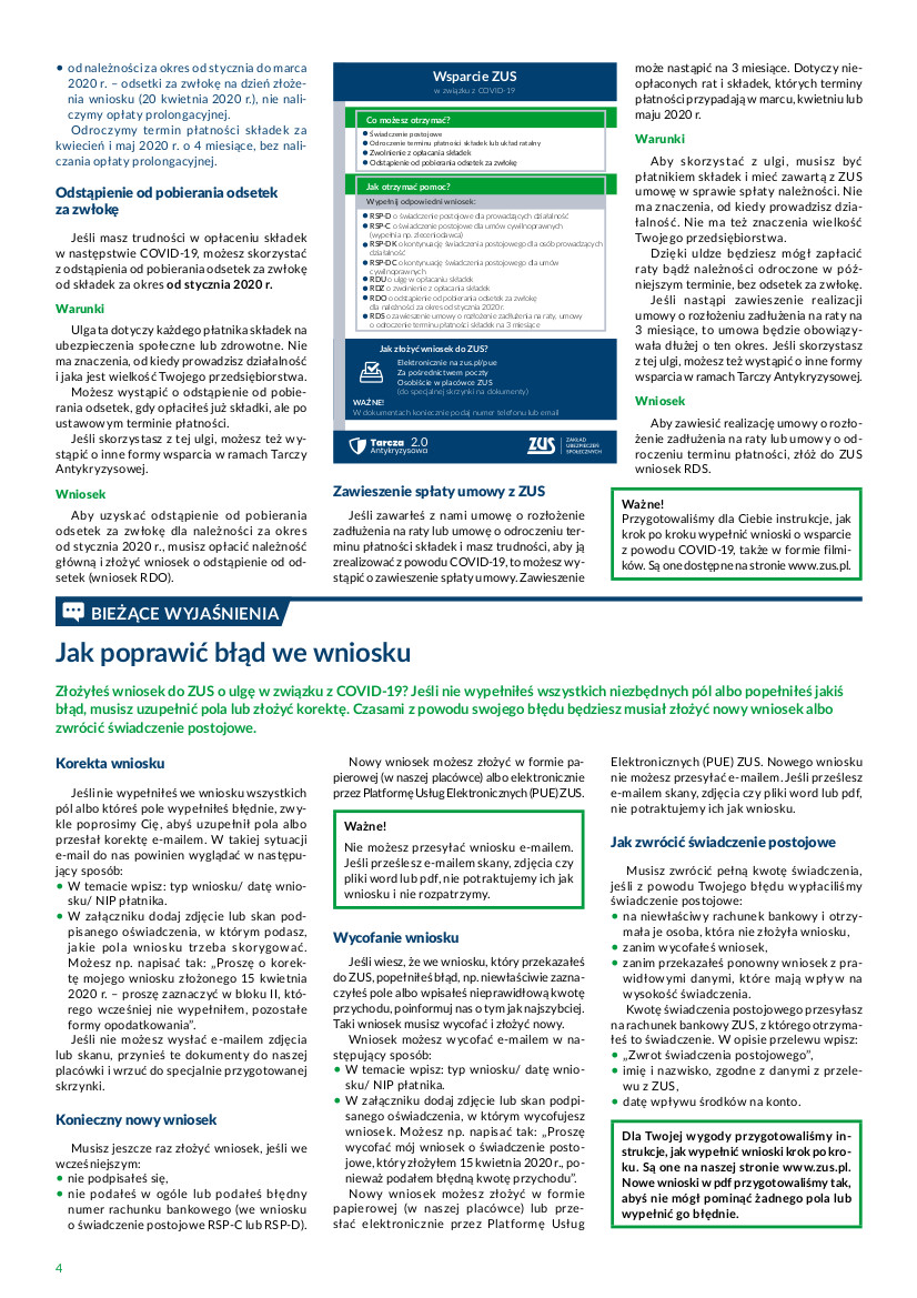 Wniosek o zwolnienie z obowiązku opłacania należności z tytułu składek (RDZ) w nowej wersji (według zasad Tarczy 2.0) zostanie udostępniony na PUE ZUS wkrótce. Nie trzeba jednak czekać do tego momentu z jego złożeniem przez PUE ZUS. Można skorzystać z wniosku, który jest aktualnie dostępny na portalu. W tym wniosku, płatnik, który zgłosił do ubezpieczeń mniej niż 50 ubezpieczonych lub jest płatnikiem – spółdzielnią socjalną, w części II wniosku powinien wypełnić pkt. 1.