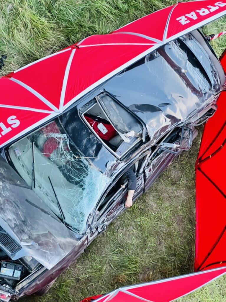 10.09.2022. 14:00. Dramatyczne chwile na drodze wojewódzkiej 631 w Markach. Jadące z dużą prędkością auto osobowe marki Volvo nagle zjechało na lewy pas ruchu wprost pod jadący z przeciwka inny samochód. Kierowca Fiata cudem zdołał uniknąć zderzenia. Niestety kierująca Volvo 19 – letnia dziewczyna straciła panowanie nad pojazdem i z ogromna siłą uderzyła w betonowy słup, a następnie dachując wpadła do rowu. Świadkowie ruszyli poszkodowanej na pomoc. Po chwili na miejscu zjawiły się również służby ratunkowe. 19 – latka miała naprawdę dużo szczęście, jedynie z ogólnymi potłuczeniami trafiła do szpitala. Cały czas do końca nie wiadomo dlaczego młoda kobieta nagle zjechała na przeciwległą stronę jezdni. Śledczy podejrzewają, że prawdopodobnie mogła próbować targnąć się na własne życie. Dziewczyna nie miała zapięty pasów bezpieczeństwa.