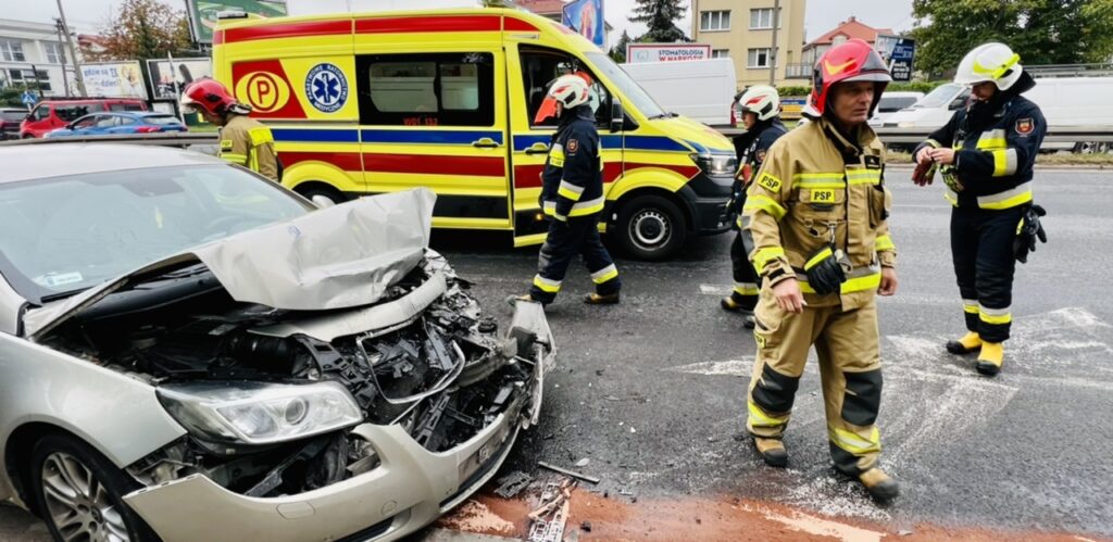 Zderzenie trzech osobówek w Sochaczewie. Dwie osoby trafiły do szpitala.