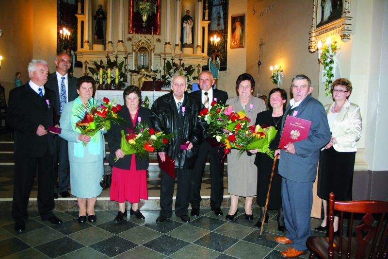 Jubileusz 50-lecia pożycia małżeńskiego. Wzorem lat ubiegłych, na wniosek Wójta Gminy Dąbrówka oraz osób zainteresowanych, Prezydent RP uhonorował medalami ?Za długoletnie pożycie małżeńskie? jubilatów naszej gminy.Uroczystość wręczenia medali odbyła się w Kościele Parafialnym w Dąbrówce 18 września 2010r. o godz.18.00. Po Mszy Świętej Pan Wójt Tadeusz Bulik dokonał dekoracji medalami dostojnych jubilatów: Halinę i Władysława Królików z Laskowa, Janinę i Kazimierza Pokrzywnickich z Trojan, Irenę i Mariana Bylaków z Dąbrówki, Krystynę i Stanisława Głowackich z Dąbrówki. Wszystkie pary otrzymały od Pana Wójta listy gratulacyjne i kwiaty. Nie zabrakło łez wzruszenia w czasie składania życzeń. Upamiętnieniem uroczystości była wspólna fotografia.