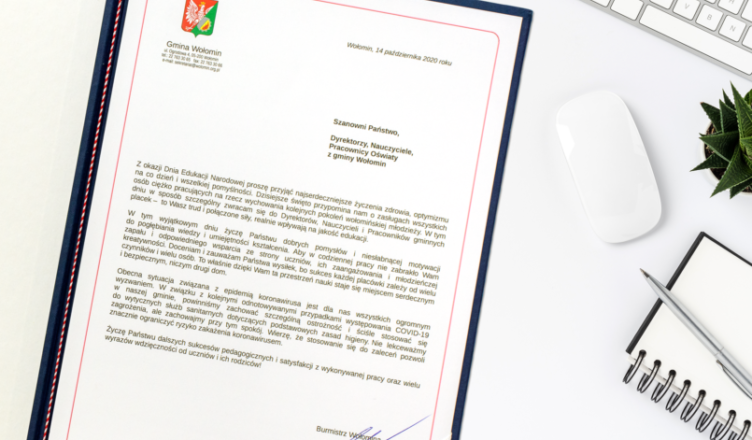 Z powodu epidemii nie możemy spotkać się na tradycyjnej akademii. W szkołach nie odbędą się zwyczajowe apele czy wręczanie kwiatów nauczycielom przez dzieci. Ten ważny dla każdej placówki edukacyjnej dzień będzie miał inną formułę. Dlatego moja wdzięczność za Państwa codzienne starania edukacyjne i wychowawcze w tym trudnym okresie jest jeszcze większa. Dziękuję za uwagę poświęconą podopiecznym, a także pełne rozsądku podejście do kwestii bezpieczeństwa. Życzę Dyrektorom, Nauczycielom oraz wszystkim pracownikom wołomińskiej oświaty wytrwałości i wielu pokoleń wdzięcznych wychowanków ? powiedziała Elżbieta Radwan Burmistrz Wołomina.